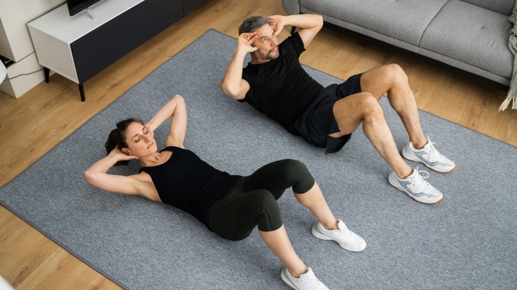 1 entrenamiento en pareja cada dos semanas: sesiones dinámicas en casa, adaptadas a ambos, con material profesional incluido.